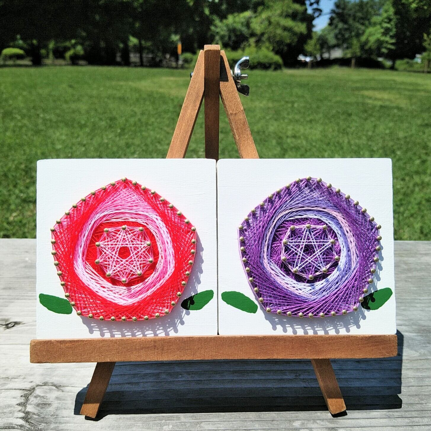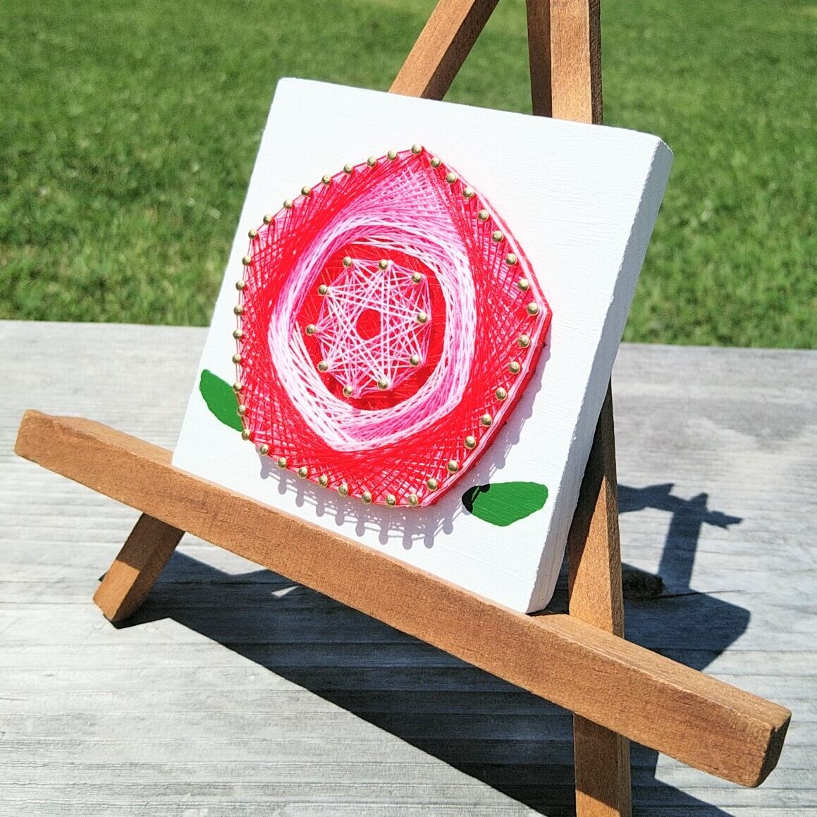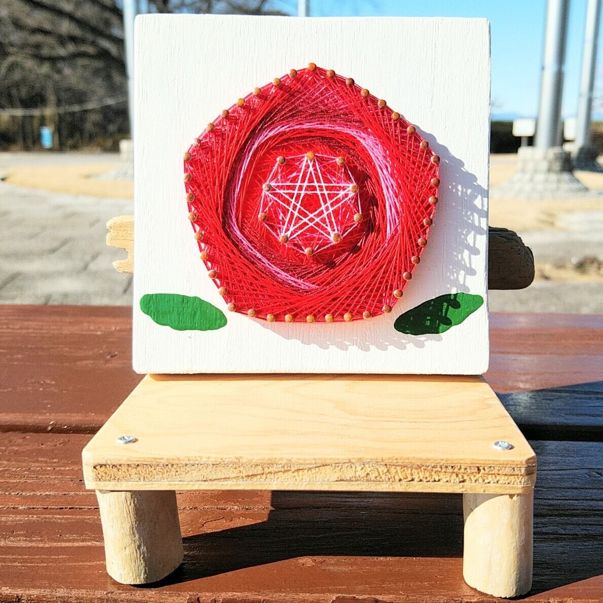 糸掛けアートメッセージ作品 【バラの花 赤】