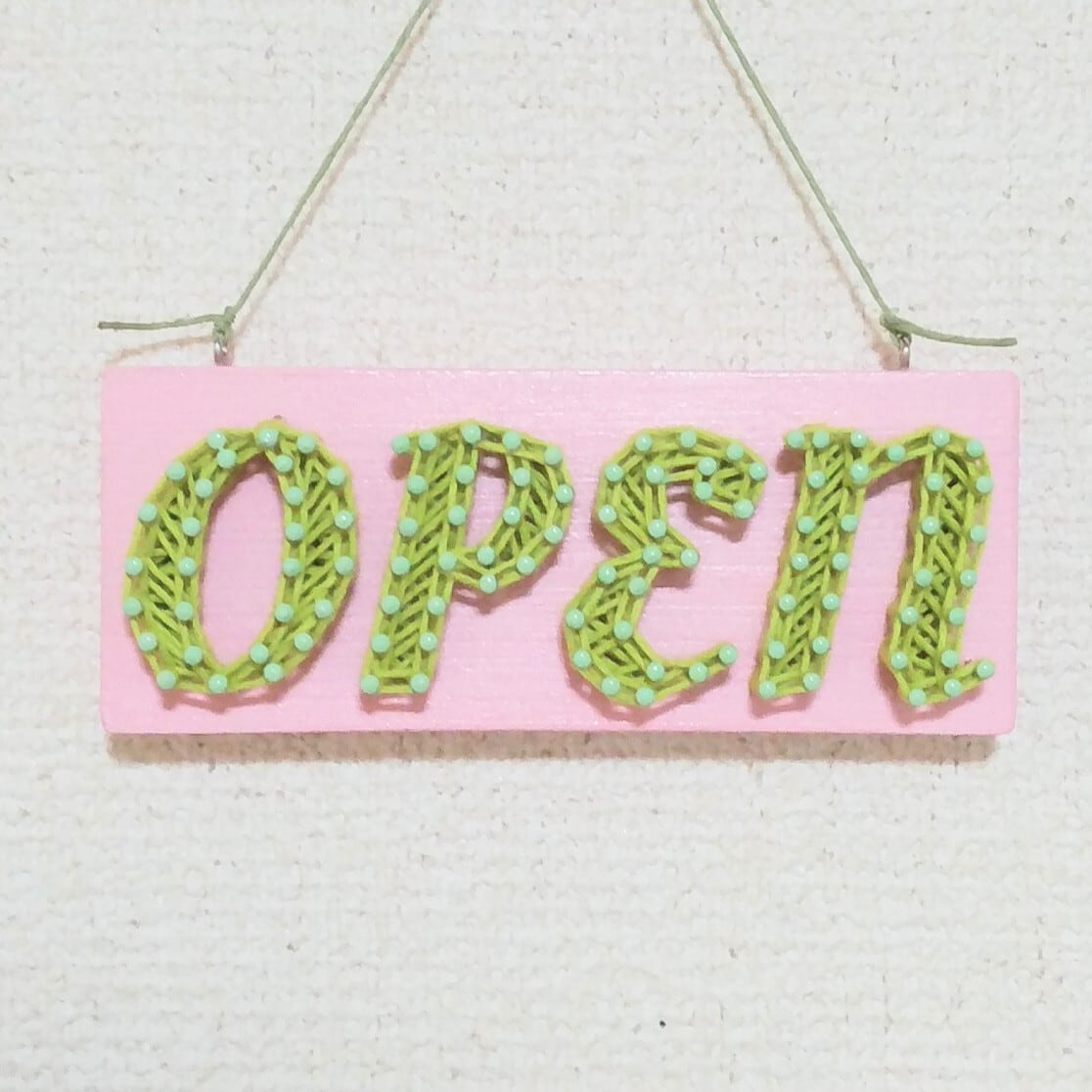 糸掛けアートメッセージ作品 OPEN壁掛け【グリーンライト】