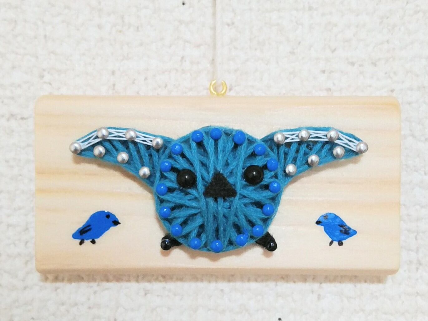 糸掛けアートメッセージ作品 【大きく羽ばたこう!】幸せの青い鳥