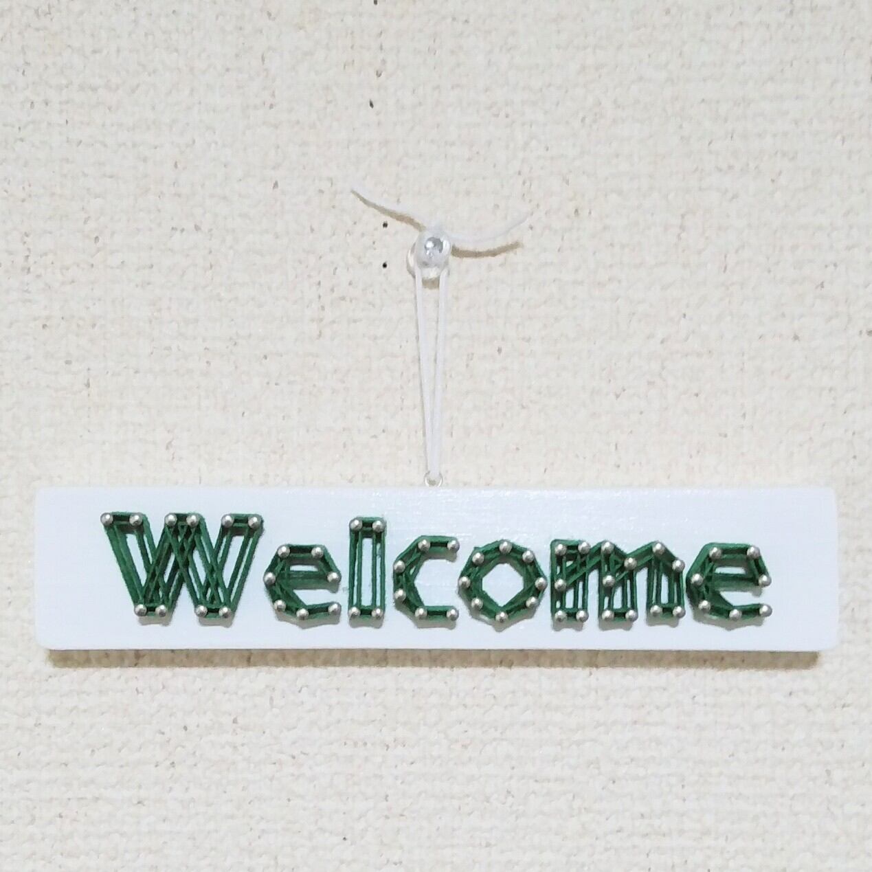 糸掛けアートメッセージ作品 welcome壁掛け【白~緑】