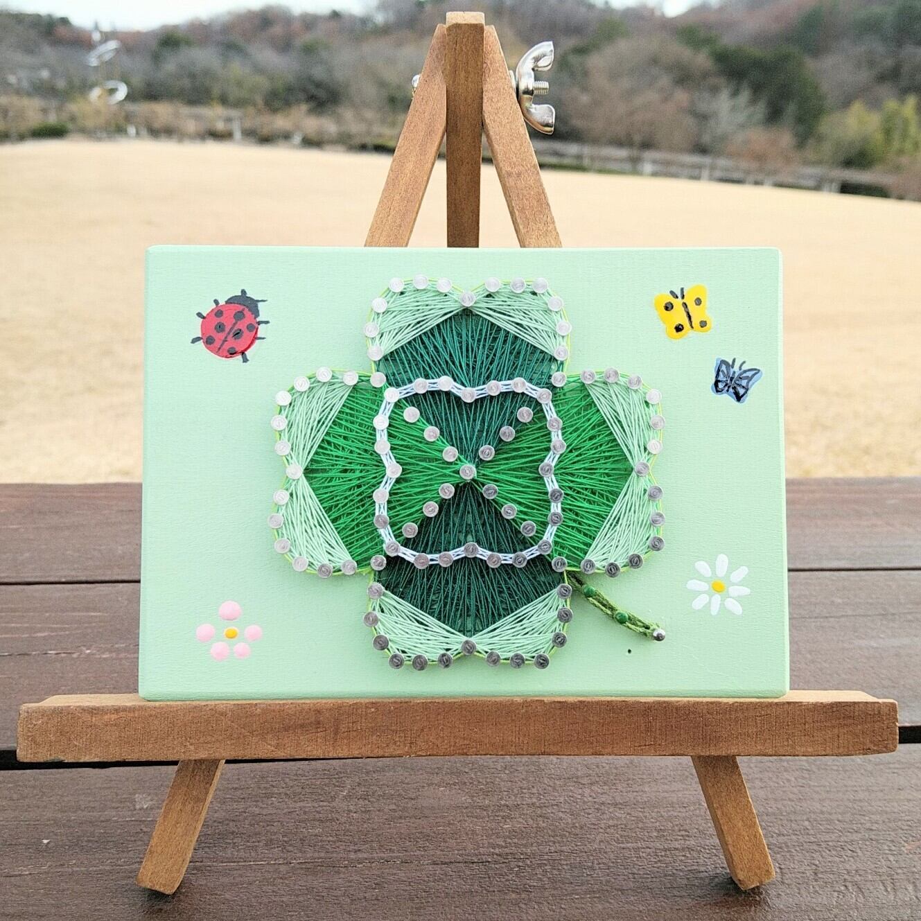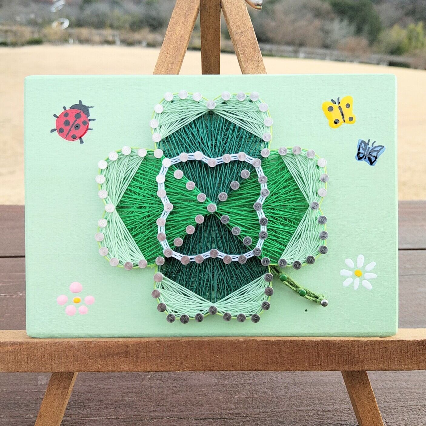 糸掛けアートメッセージ作品 四つ葉作品【春の輝き】